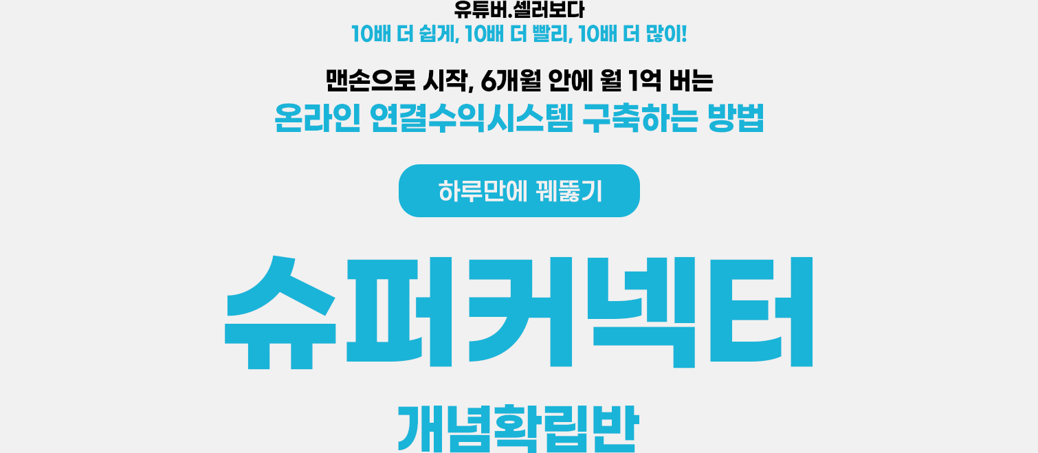 본 페이지에 안내된 프로그램은 '온라인에서 맨손으로 시작, 6개월 안에 연결로 월 1억 버는 슈퍼커넥터 되는 방법' 하루 속성 과정인 '슈퍼커넥터 개념확립반' 과정으로,