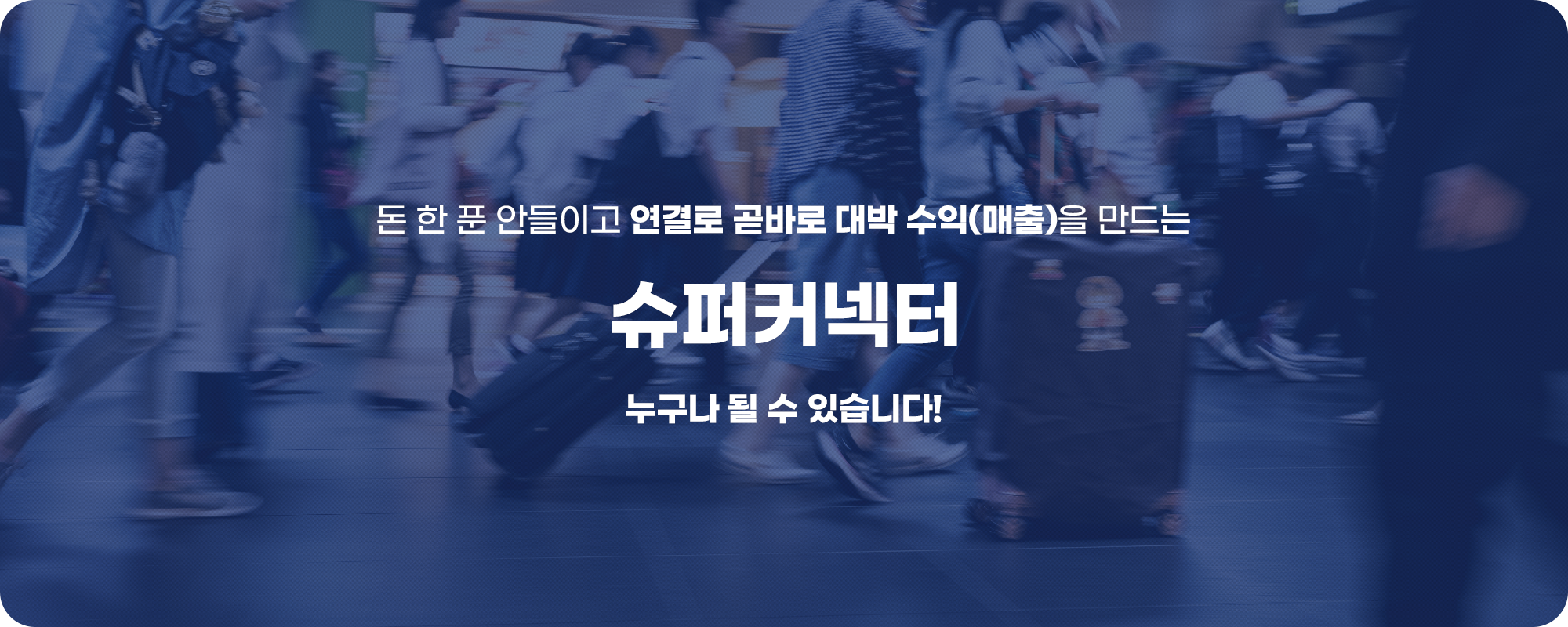 누구나 상품과 서비스를 제공하는 쇼핑몰 및 홈페이지와 유튜버, 블로거들을 쉽게 '연결'해주고 그 과정에서 다양한 '연결'수익을 손쉽게 만들어낼 수 있고 이렇게 쇼핑몰 및 홈페이지와 유튜버, 블로거들을 쉽게 '연결'하여 유통.판매 영역에서 손쉽게 '연결'수익을 손쉽게 만들어내는 사람들(유튜버, 블로거도 포함)을 저는 슈퍼커넥터(super connector)라고 부르는 것입니다.